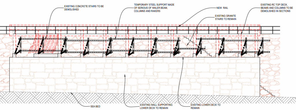 These works are expected to be carried out from the seaward side, minimising disruption to pier-side activities. However, please note that the pier head (from the security gate) will need to be closed during demolition.