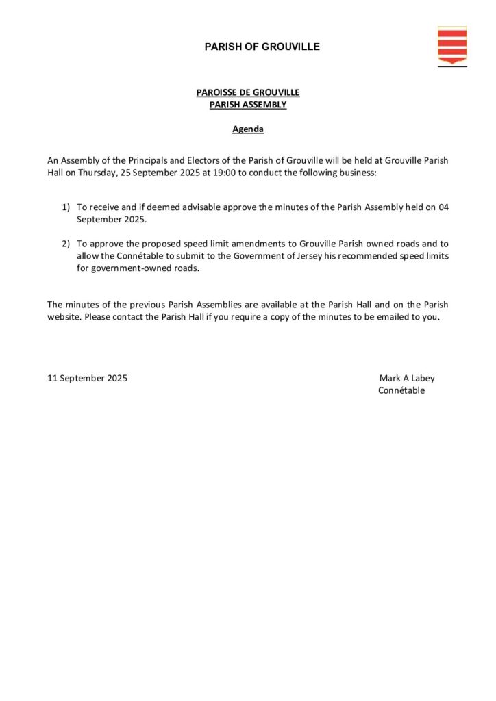 Parish Assembly on Speed Limit Amendments to be held on Thursday, 25 September 2025 at 19:00