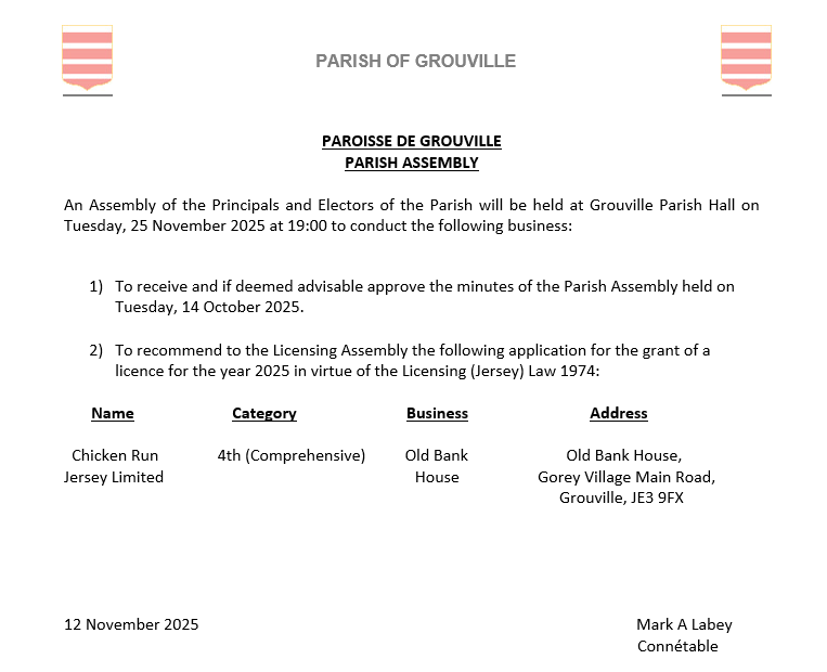 Parish Assembly – Tuesday, 25 November 2025 at 19:00